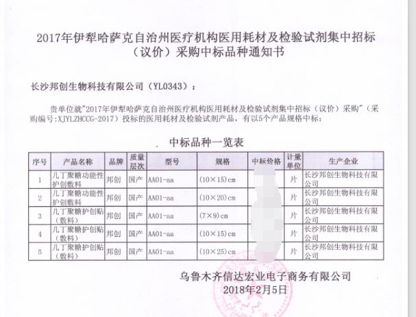 幾丁聚糖功能性護(hù)創(chuàng)敷料中標(biāo)規(guī)格:(10×15)cm, (10×20)cm