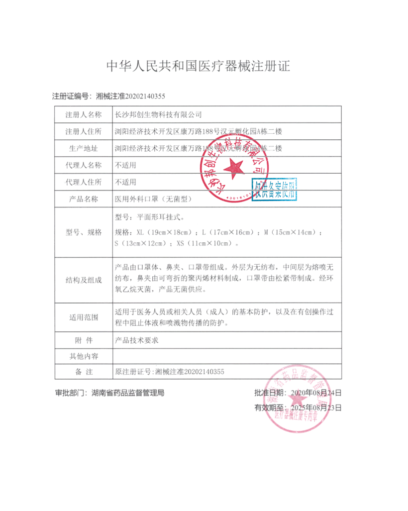 醫(yī)用外科口罩(無菌)--注冊(cè)證
