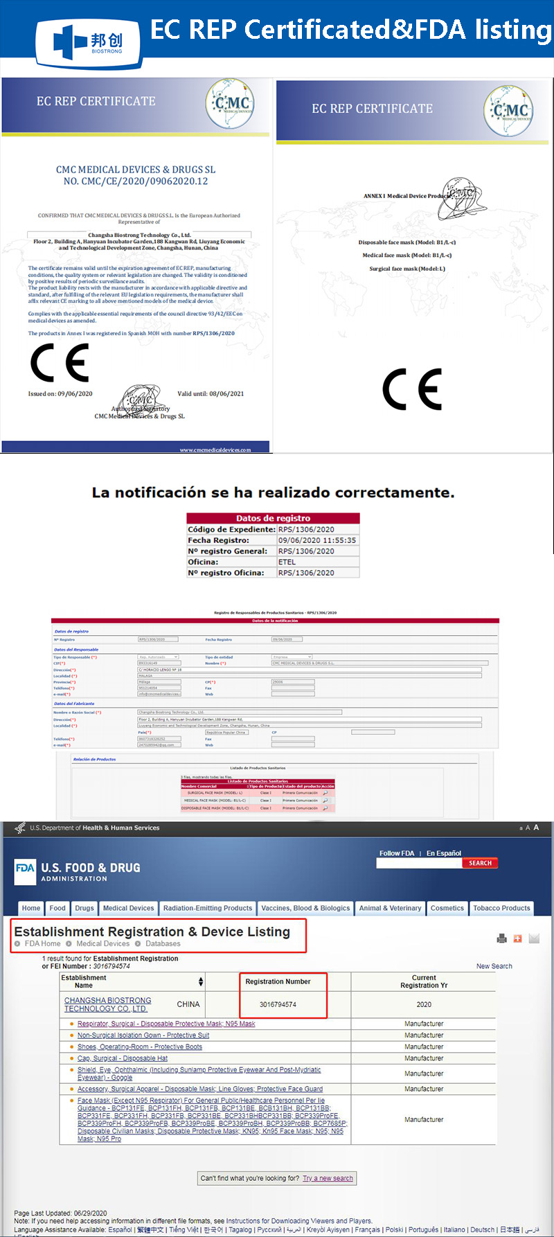 Certification:FDA EC REP certificated