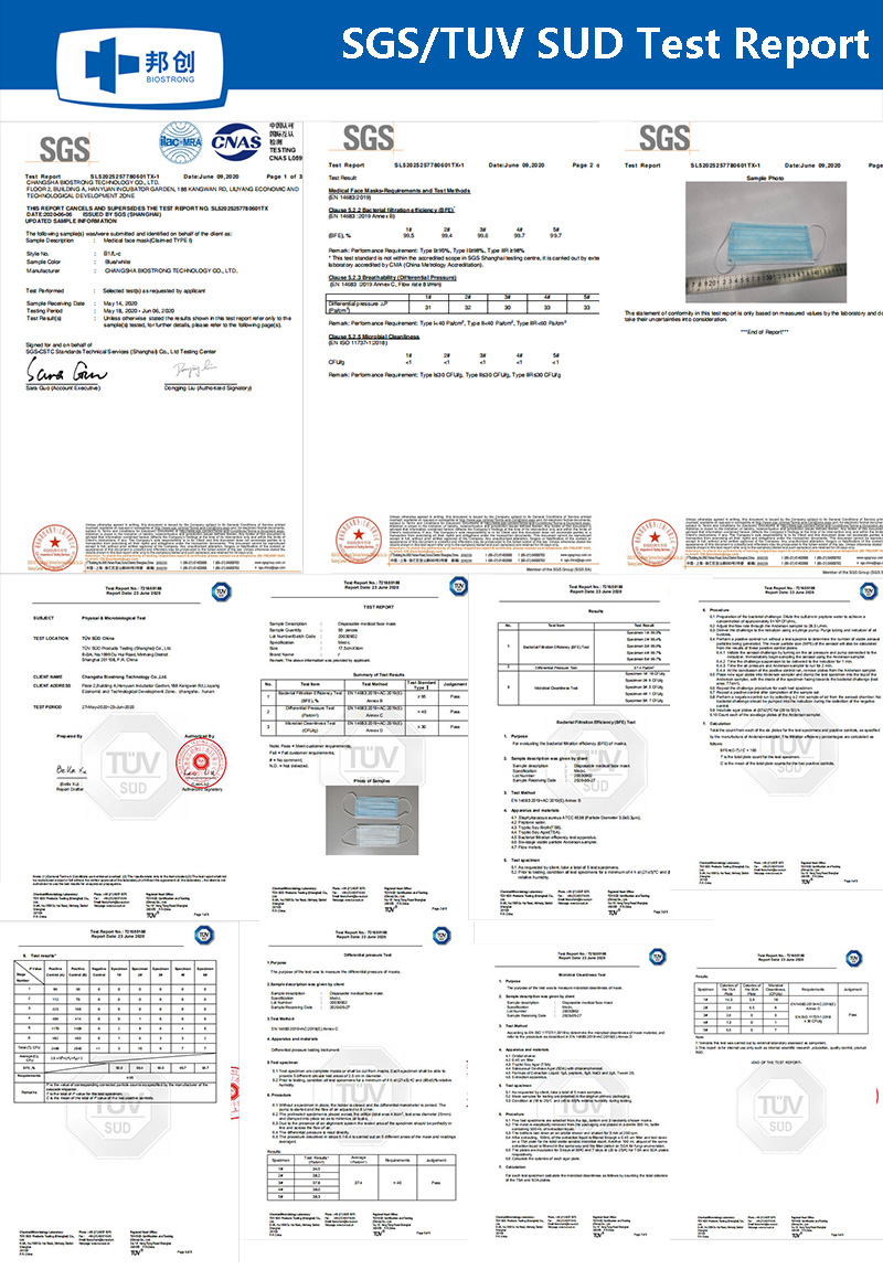 FDA Registered. Registered Number:3016794574 SGS test report with standard EN14683 Type I Chinese Standard :YY/T 0969-2013 Production capacity:1 million/ week