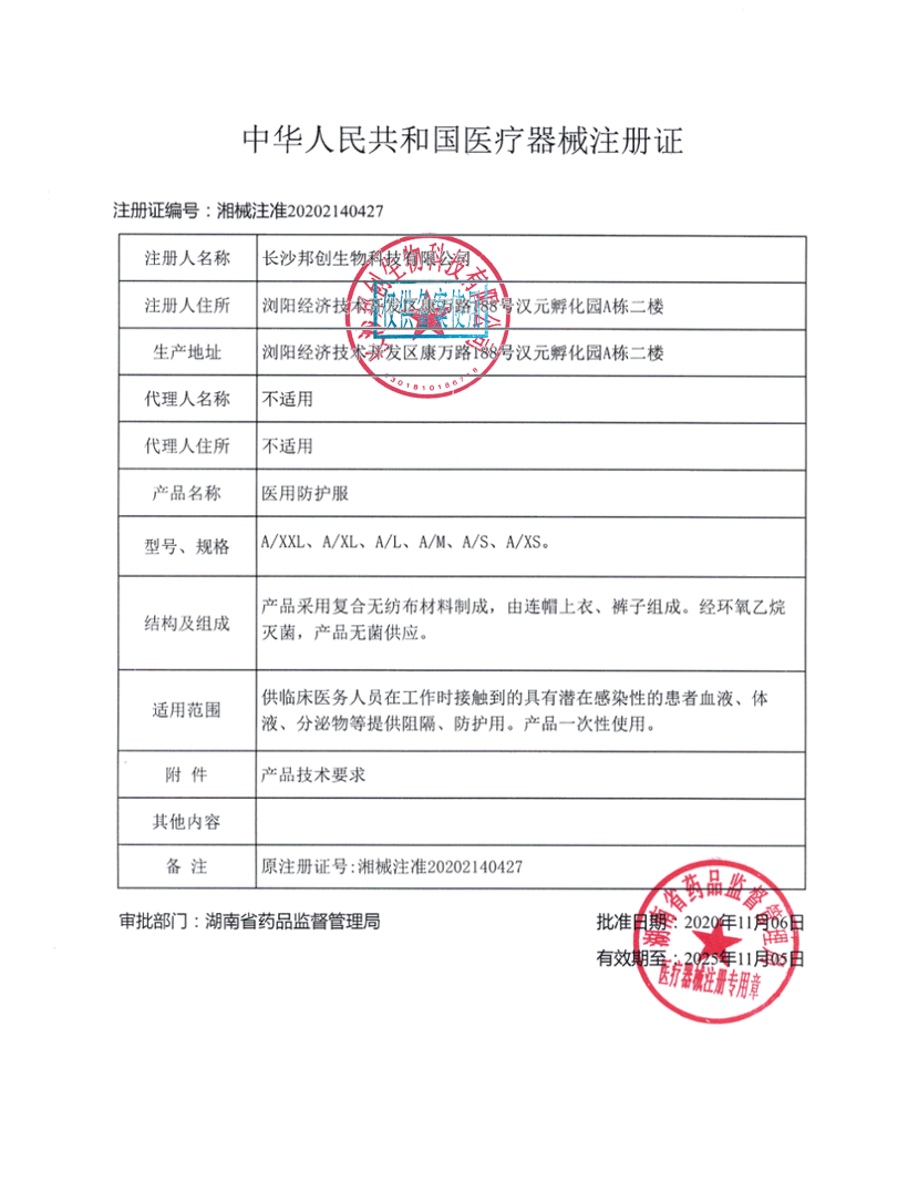 醫(yī)用防護(hù)服(無(wú)菌型)--注冊(cè)證